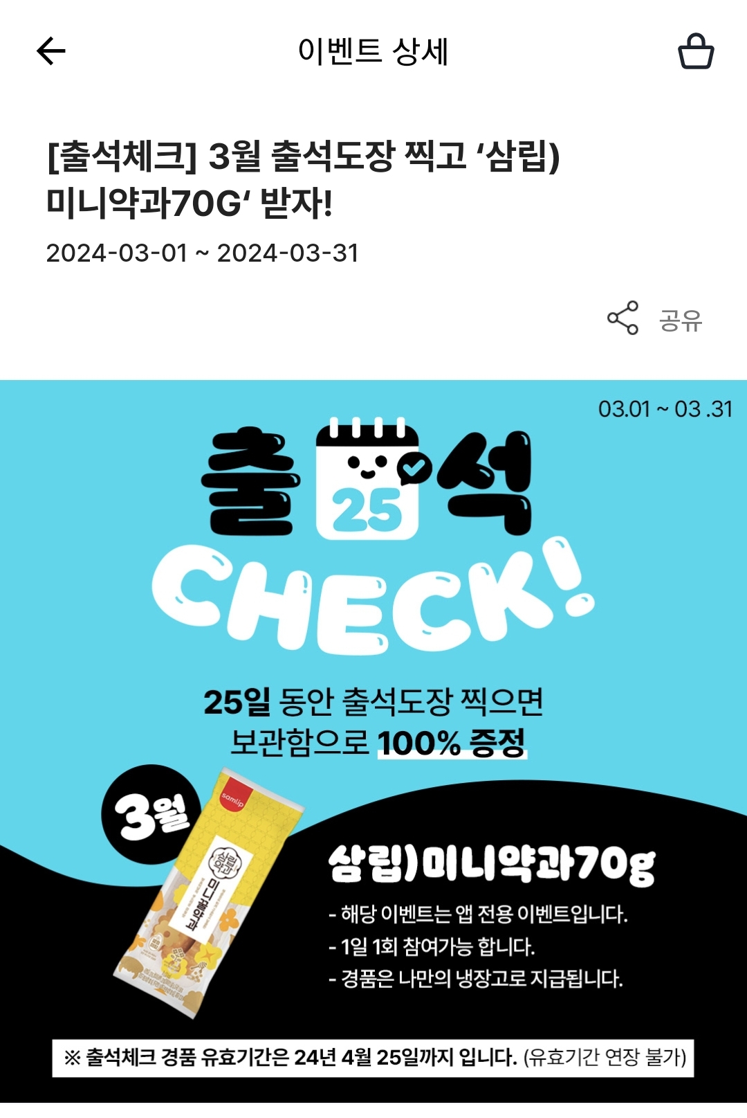 2월에 만근 하면 마이쮸였고 3월은 미니약과예요