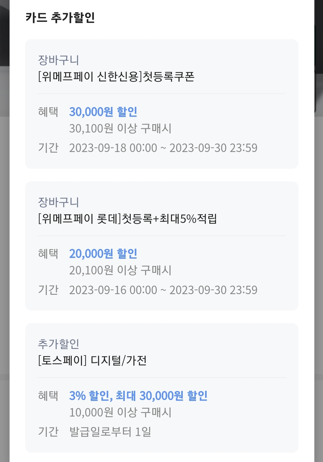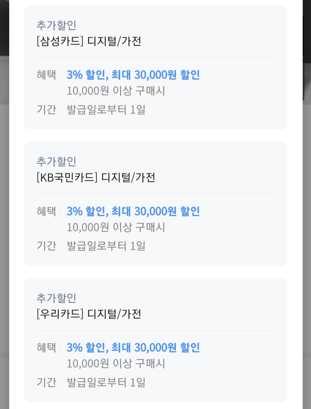갖고 계신 신용카드 확인하셔서 제일 혜택 많이 받으실 수 있는 곳에서 구매하세요