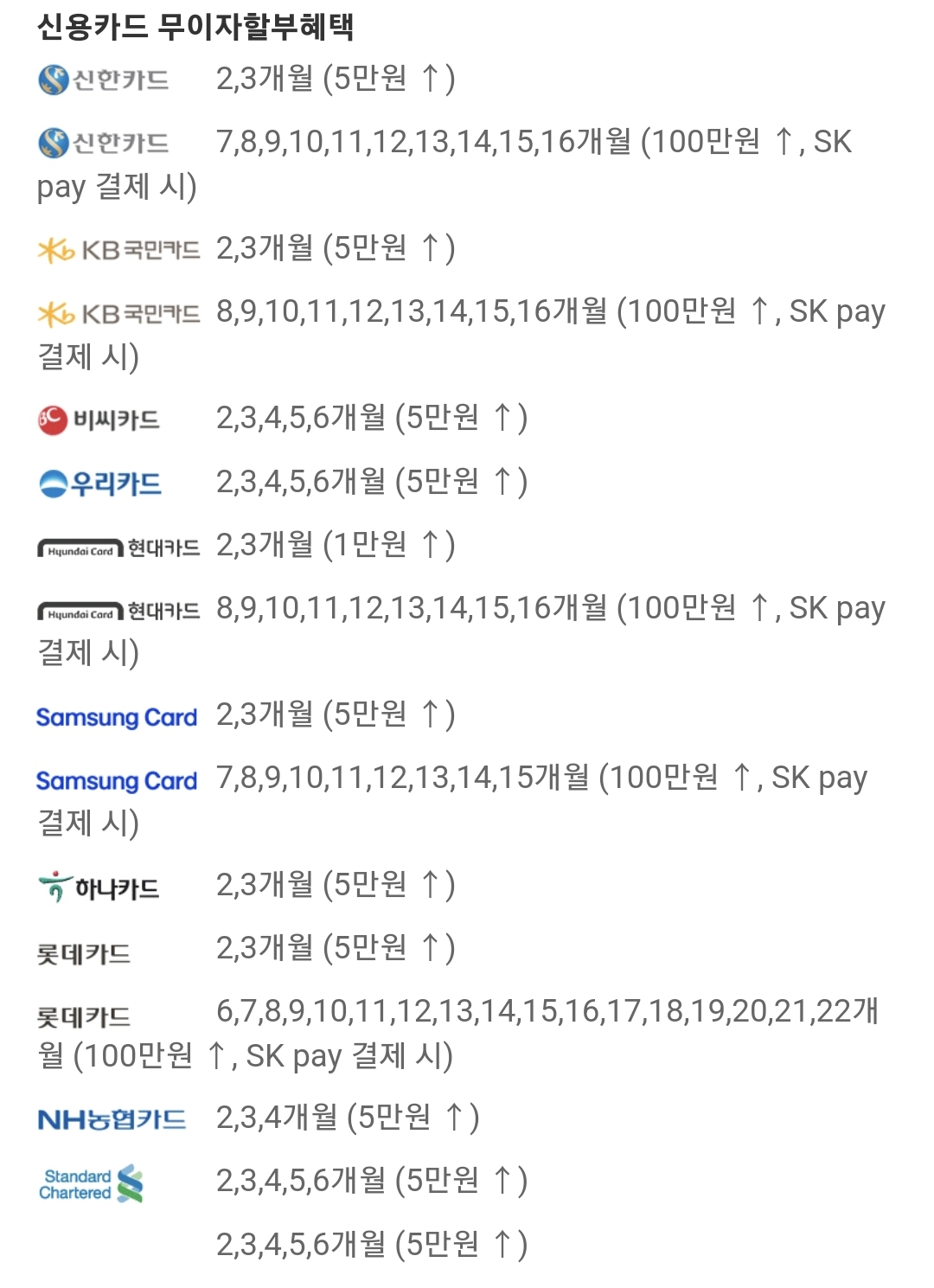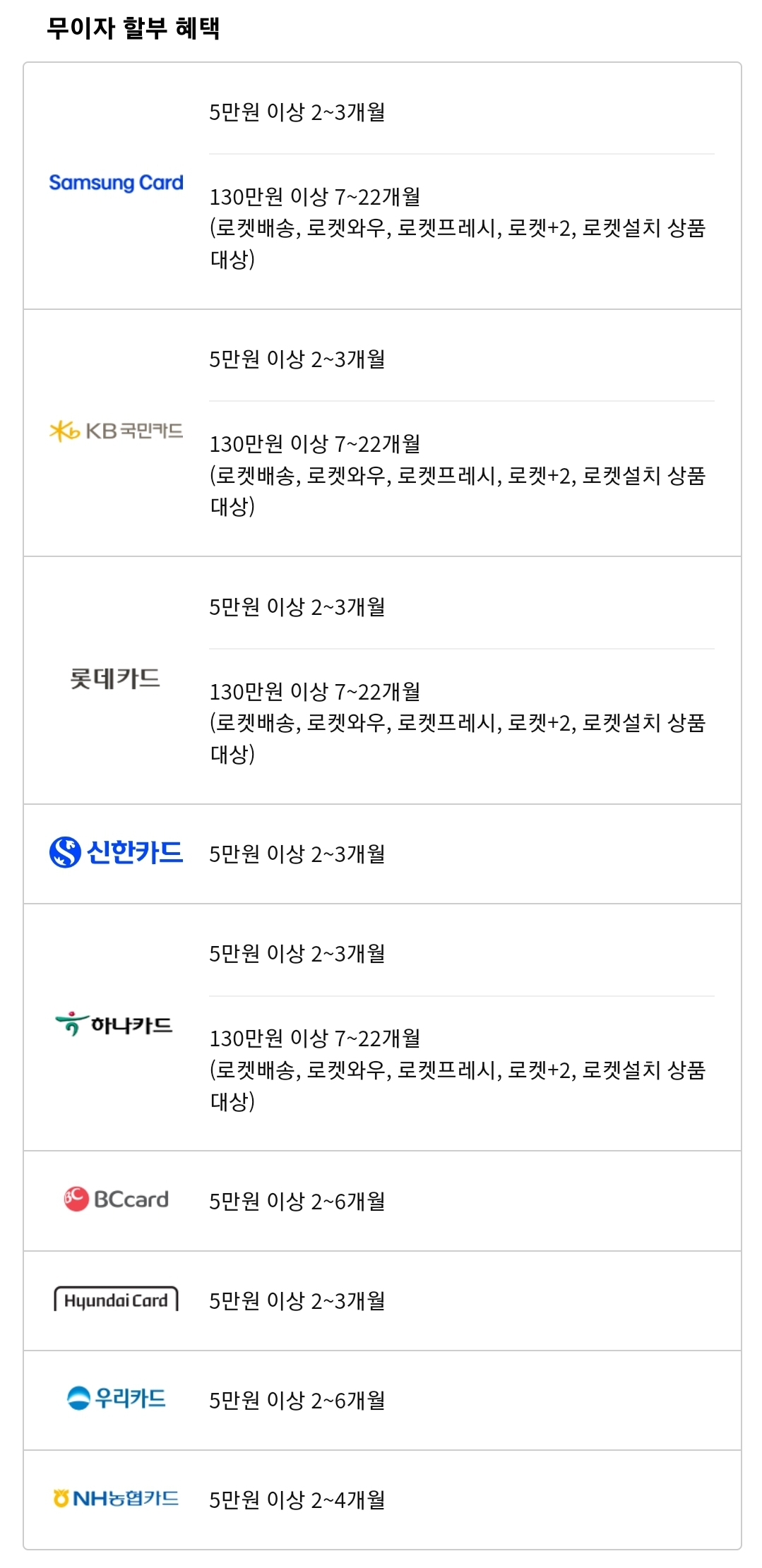 카드별 무이자할부혜택 확인하시고 구매하세요