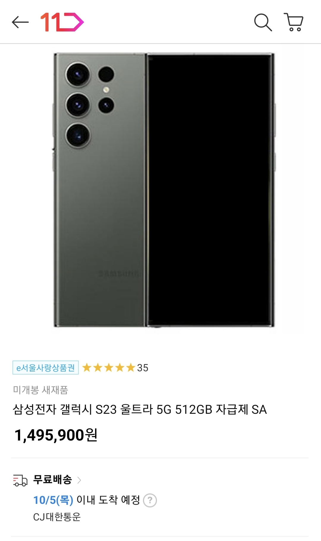 11번가에서 Galaxy S23Ultra 512GB 를 1,495,900원에 무이자할부 최대 22개월까지 구매할 수 있어요