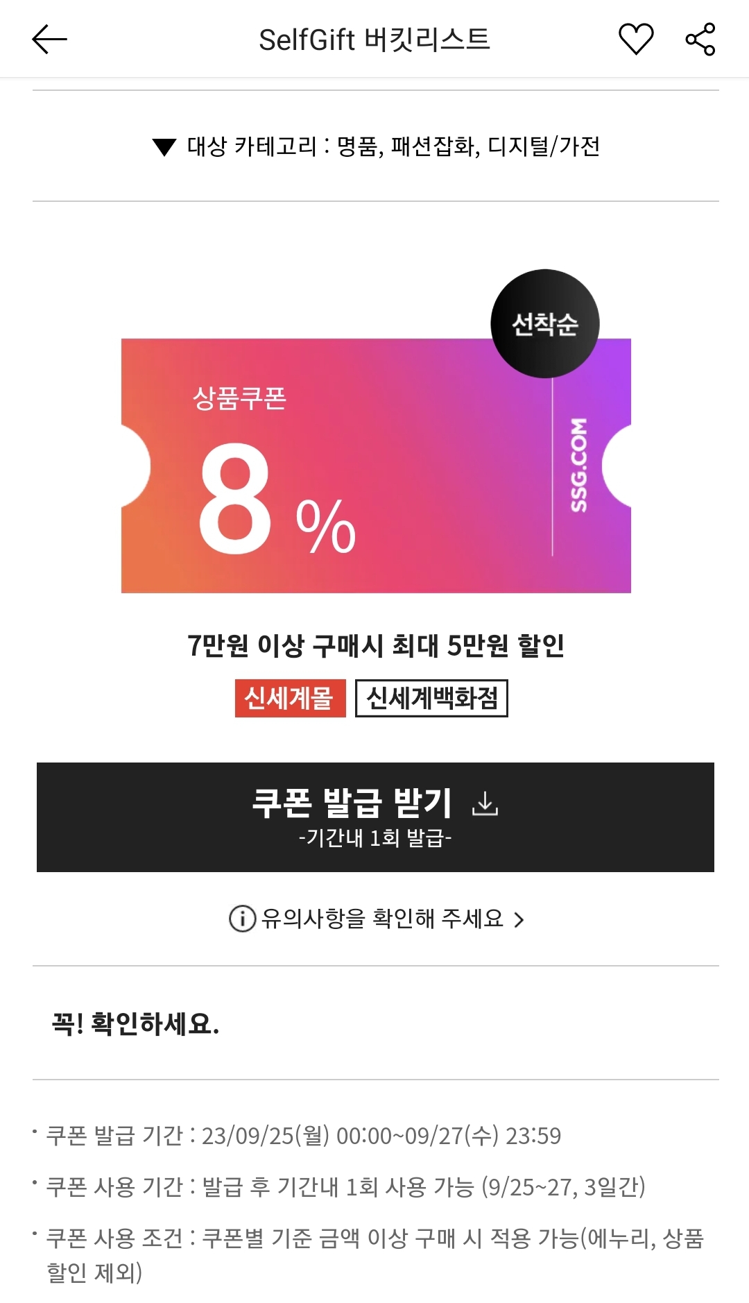 9/25~9/30까지 연휴 버킷 리스트 할인 이벤트로 8% 선착순 쿠폰 받으시면 5만원 추가 할인 가능합니다
