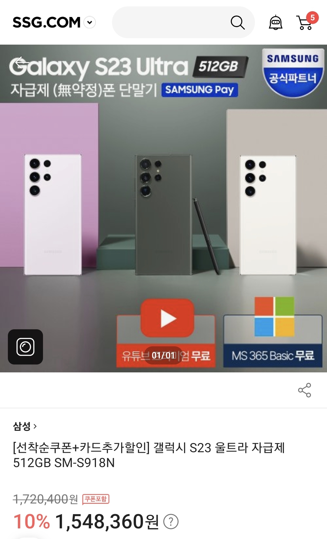 216G와 512G 금액 차이가 많이 크지 않아서 23년 9월 25일 기준 갤럭시S23울트라 512G 자급제 최저가 사이트 정리해 보겠습니다